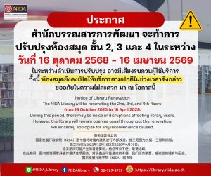 ประกาศ แจ้งปรับปรุงห้องสมุดระหว่างวันที่ 16 ตุลาคม 2568 – 16 เมษายน 2569