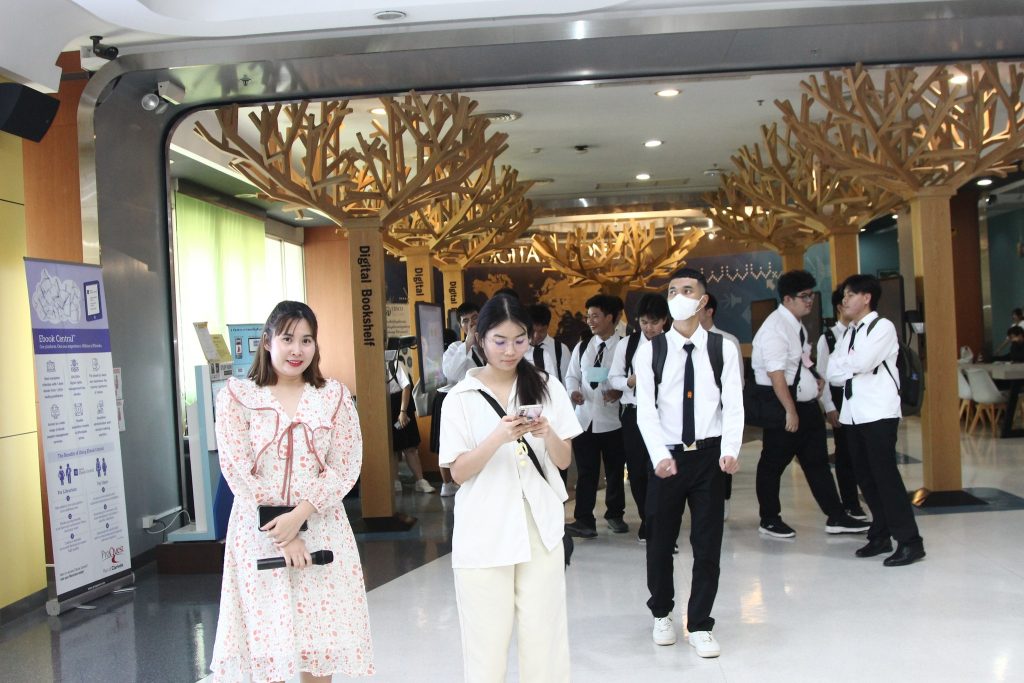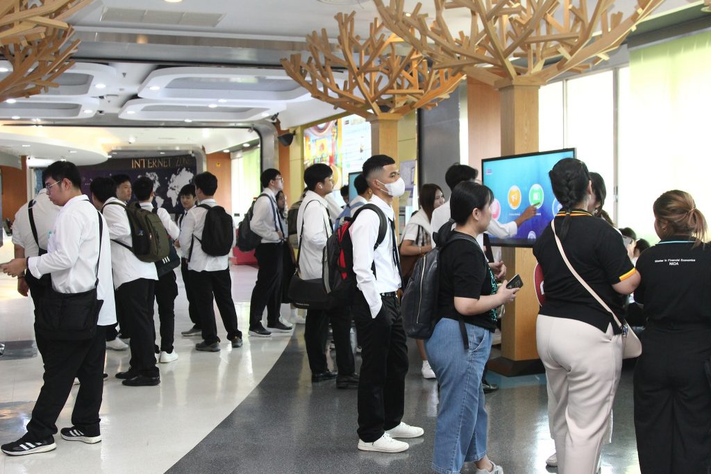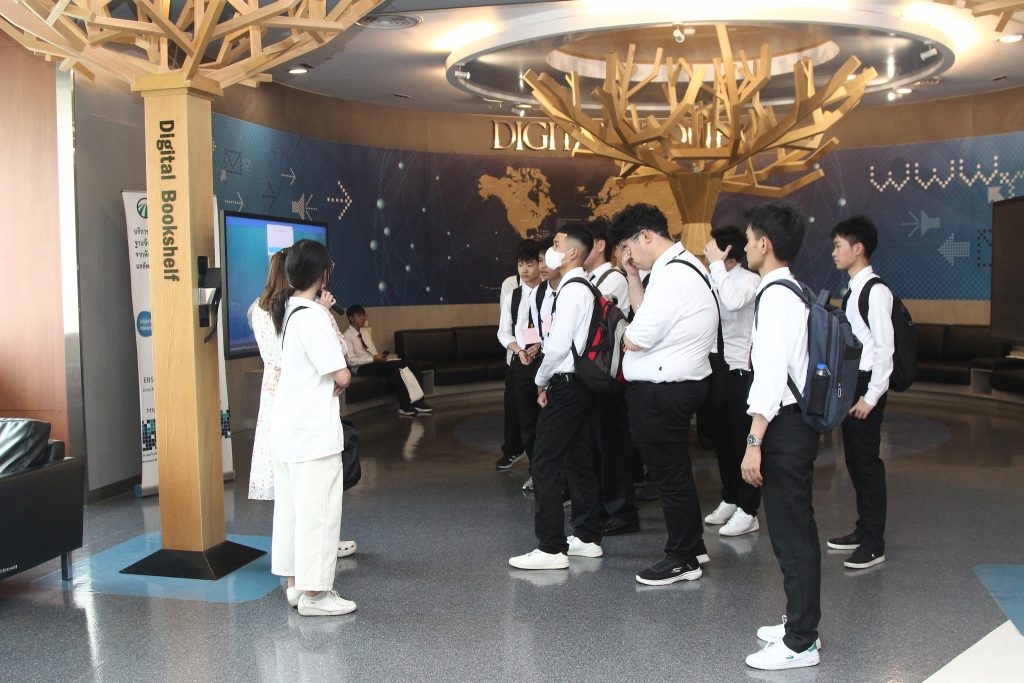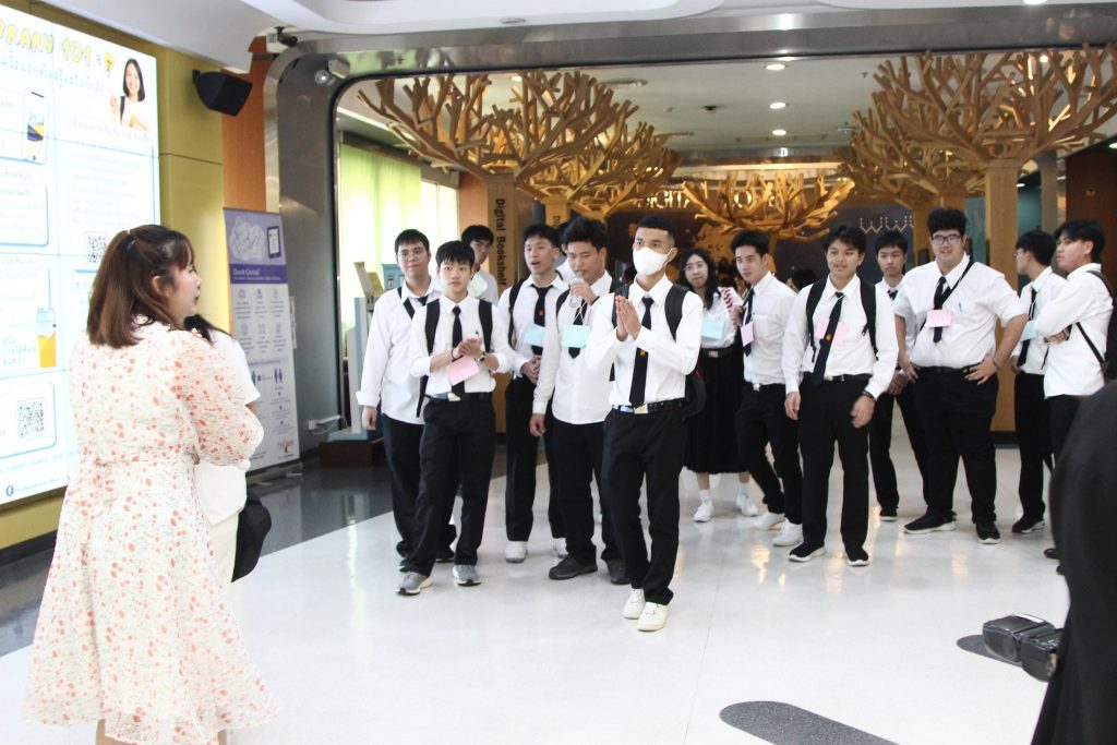 ภาพกิจกรรมเยี่ยมชมห้องสมุด วันจันทร์ที่ 7 กรกฎาคม 2568 คณะพัฒนาการเศรษฐกิจ นำนักศึกษาหลักสูตรตรีควบโท ระหว่างสถาบันเทคโนโลยีพระจอมเกล้าเจ้าคุณทหารลาดกระบังและสถาบันบัณฑิตพัฒนบริหารศาสตร์ สาขาวิศวกรรมการเงิน รุ่นที่ 7 เข้าเยี่ยมชมห้องสมุด และรับฟังการใช้งานเบื้องต้น โดยมี นางสาวปัญชลี เรืองสมุทร บรรณารักษ์ปฏิบัติการ ให้การต้อนรับ