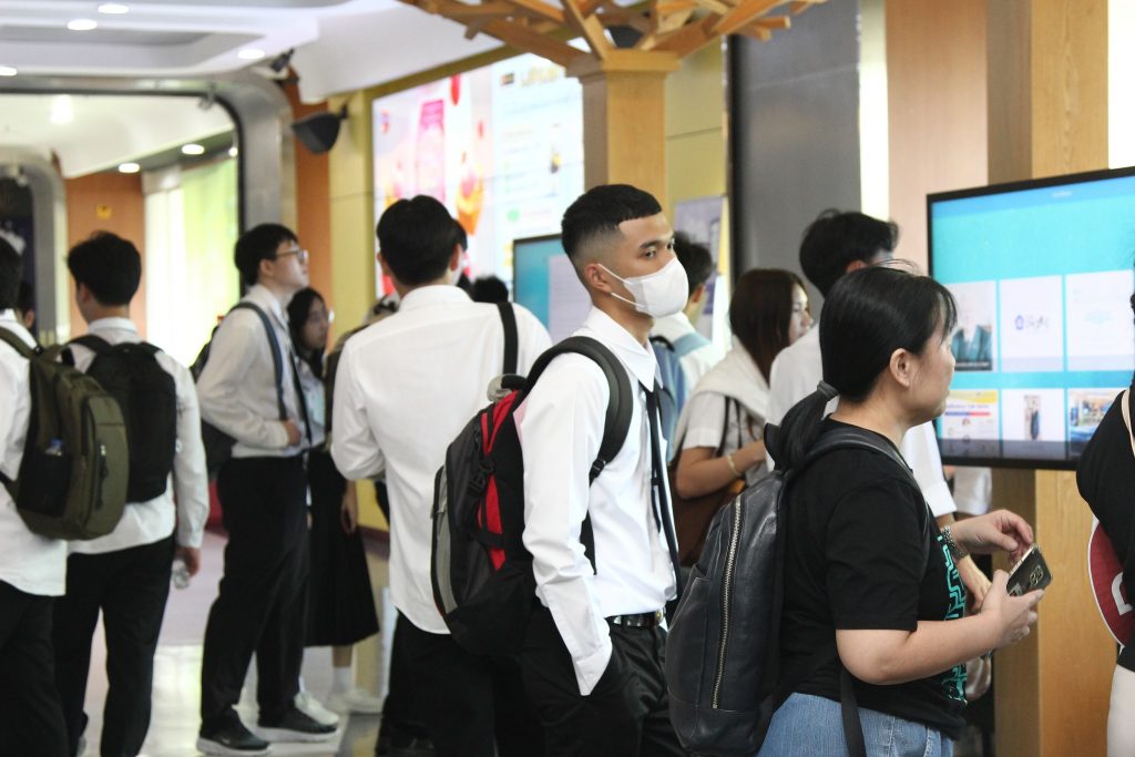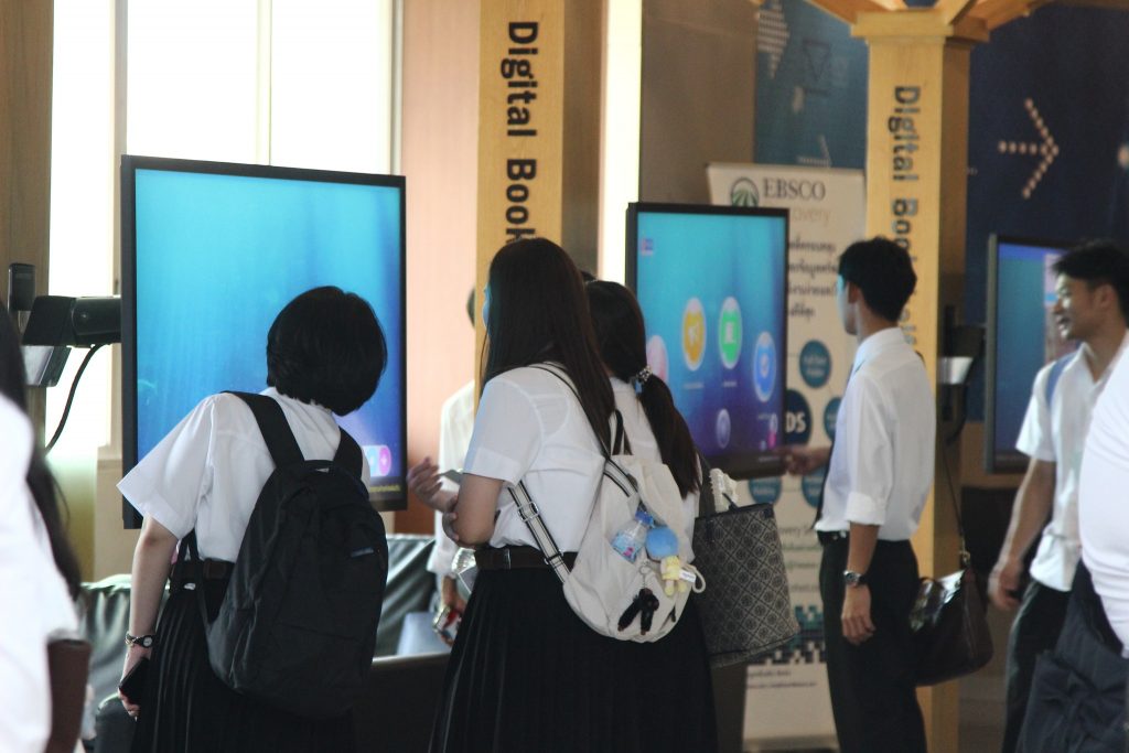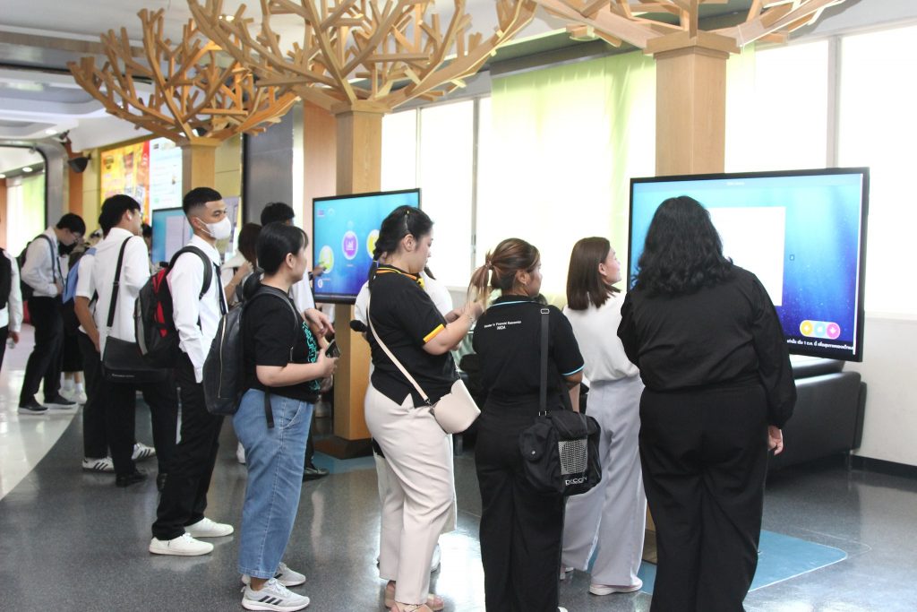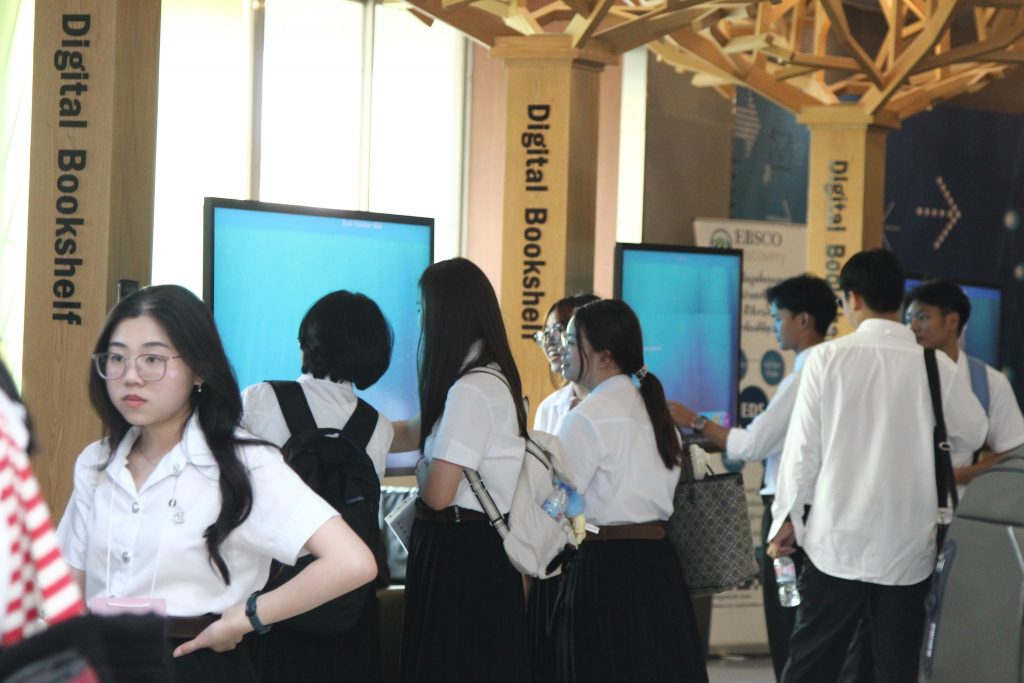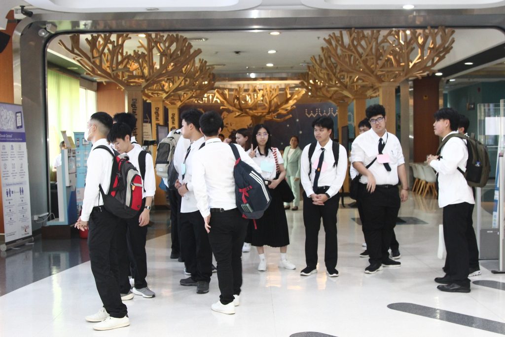 ภาพกิจกรรมเยี่ยมชมห้องสมุด วันจันทร์ที่ 7 กรกฎาคม 2568 คณะพัฒนาการเศรษฐกิจ นำนักศึกษาหลักสูตรตรีควบโท ระหว่างสถาบันเทคโนโลยีพระจอมเกล้าเจ้าคุณทหารลาดกระบังและสถาบันบัณฑิตพัฒนบริหารศาสตร์ สาขาวิศวกรรมการเงิน รุ่นที่ 7 เข้าเยี่ยมชมห้องสมุด และรับฟังการใช้งานเบื้องต้น โดยมี นางสาวปัญชลี เรืองสมุทร บรรณารักษ์ปฏิบัติการ ให้การต้อนรับ