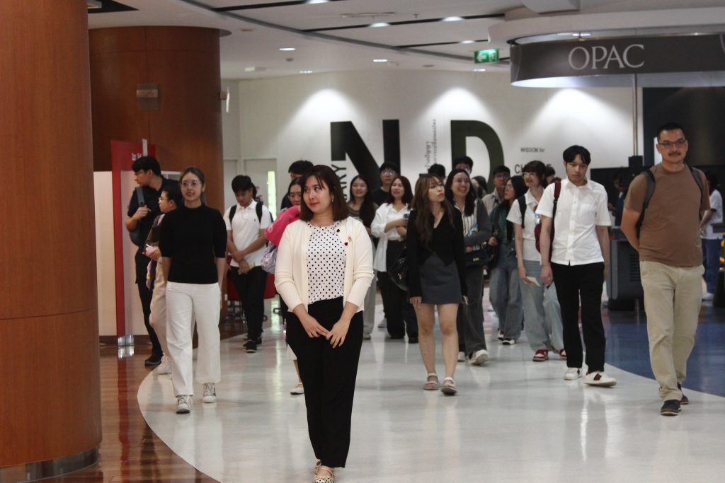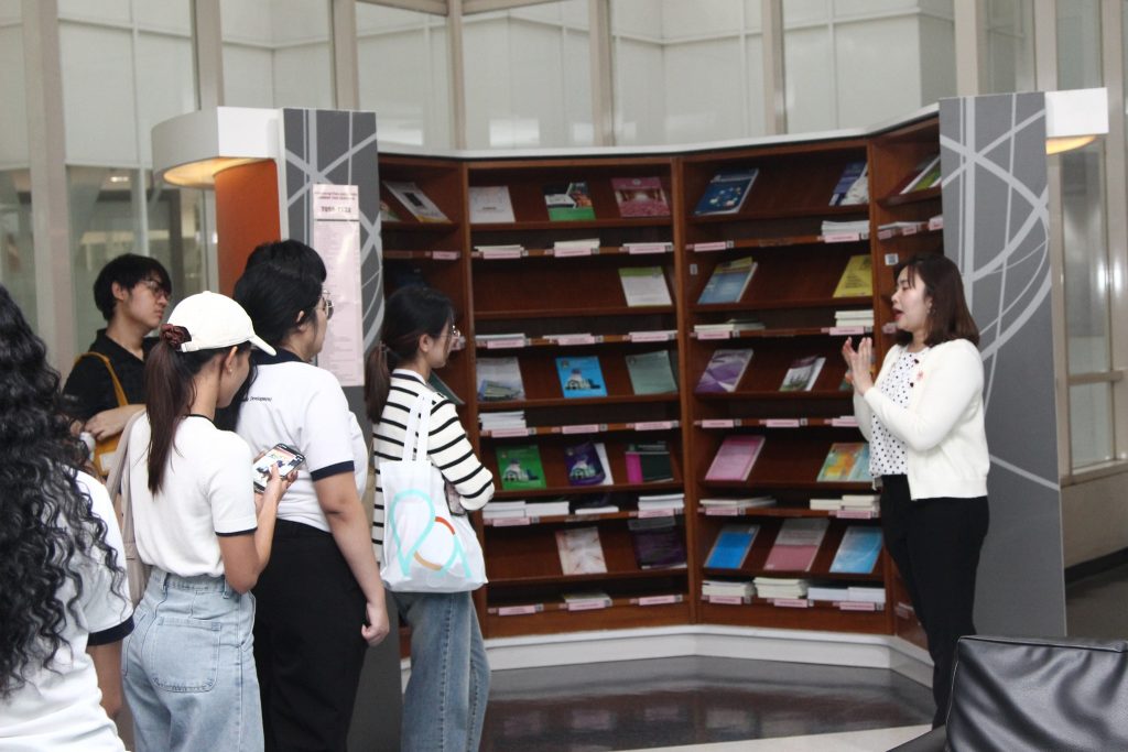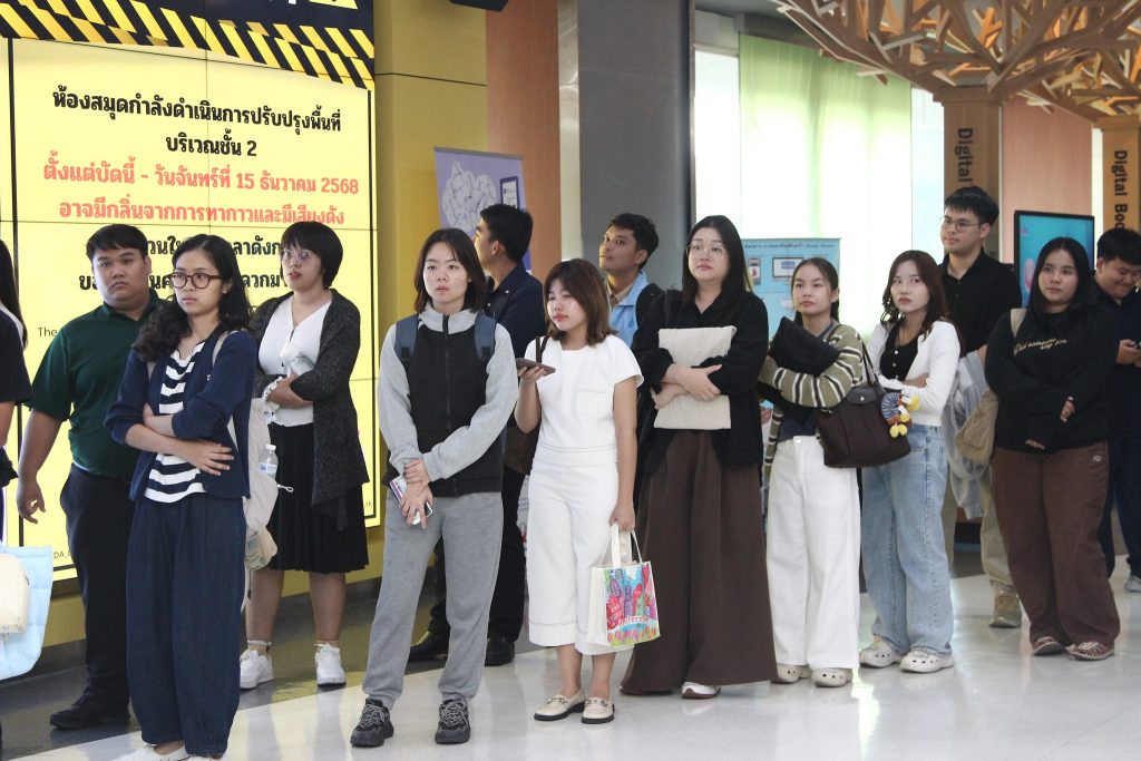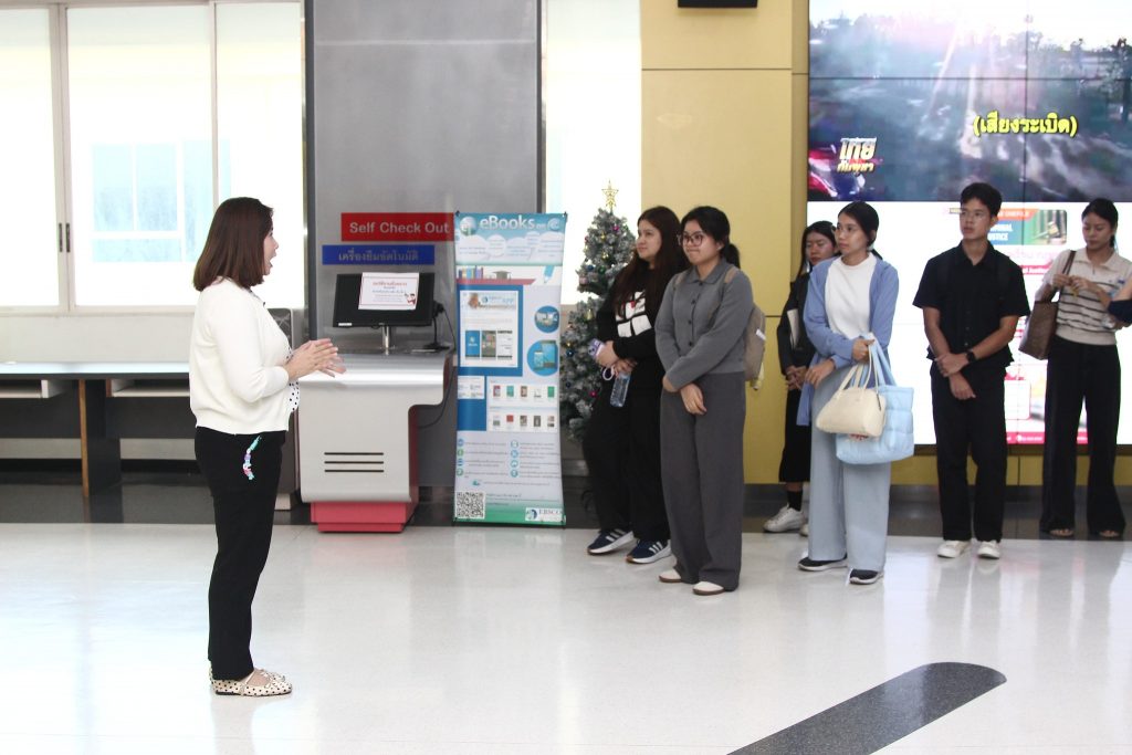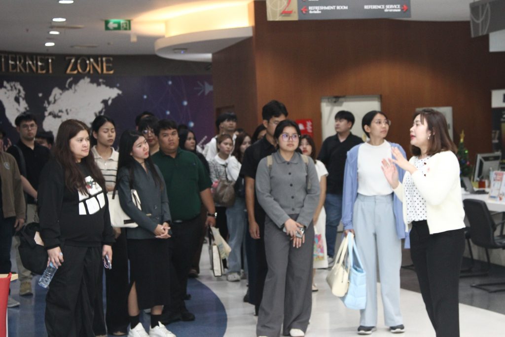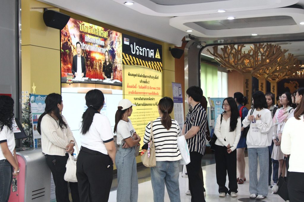 ภาพกิจกรรมเยี่ยมชมห้องสมุด:วันจันทร์ที่ 15 ธันวาคม 2568 สโมสรนักศึกษาได้นำนักศึกษาใหม่ภาคการศึกษาที่ 2/2568 เข้าเยี่ยมชมหอสมุดสุขุม นวพันธ์ โดยมีนางสาวปัญชลี เรืองสมุทร บรรณารักษ์ปฏิบัติการ ให้การต้อนรับและแนะนำการใช้ห้องสมุดเบื้องต้นให้แก่น้องๆนักศึกษาใหม่