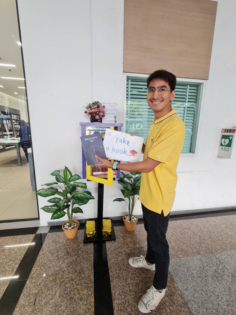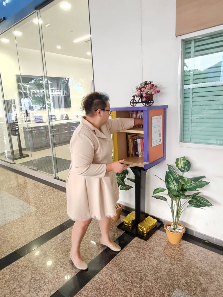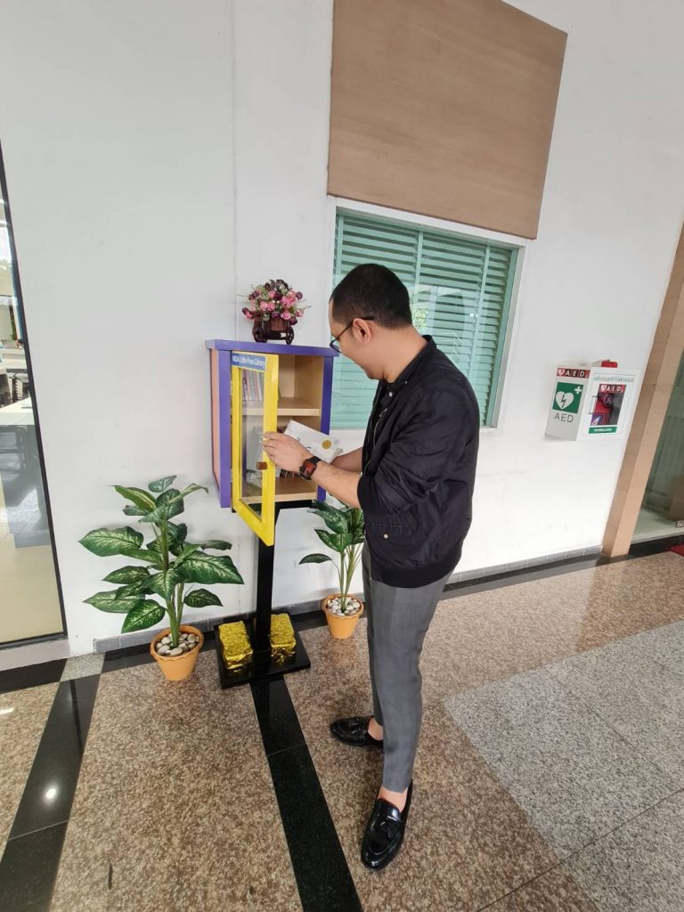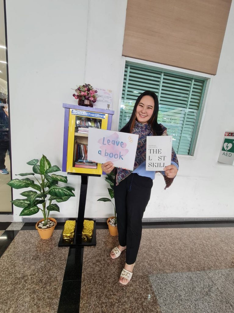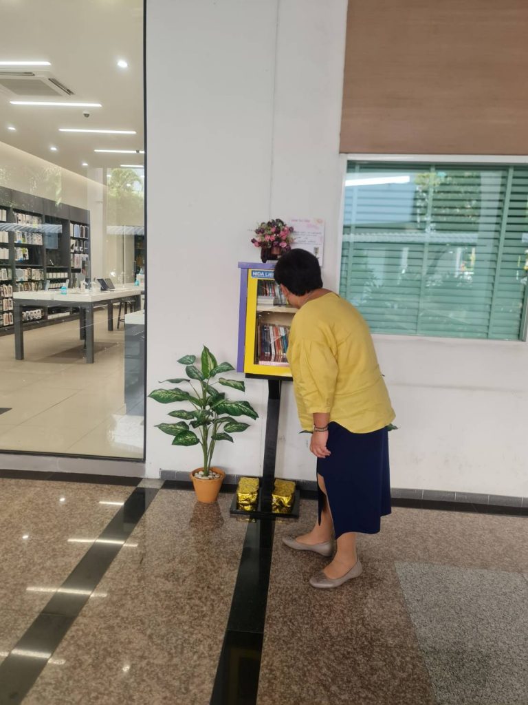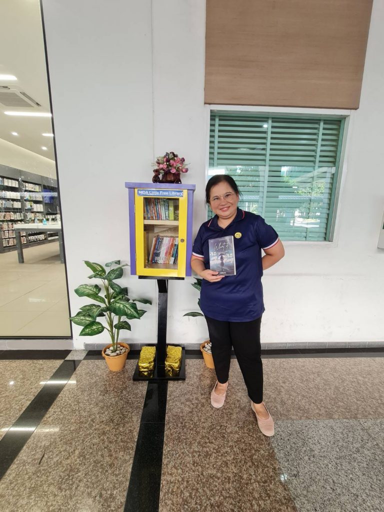 ภาพกิจกรรม 8 มกราคม 2567 : สำนักบรรณสารการพัฒนาจัดกิจกรรม “เปิดตู้ปันอ่าน (NIDA Little Free Library)” Take a Book … Leave a Book หยิบ 1 เล่มไป … นำ 1 เล่มใหม่มาคืน เพื่อแบ่งปันพื้นที่การเรียนรู้แก่ชุมชน และส่งเสริมให้เกิดการเรียนรู้ตลอดชีวิต (Lifelong Learning) นำทีมปันอ่านโดย รศ.ดร.ปราโมทย์ กั่วเจริญ ผู้อำนวยการสำนักบรรณสารการพัฒนา และมีชาวนิด้าร่วมกิจกรรมมากมาย โดยตู้ปันอ่านจะตั้งอยู่ ณ อาคารชุบ กาญจนประภากร ปันสุขโดย สำนักบรรณสารการพัฒนา